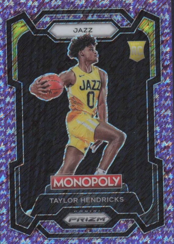 2023-24 PRIZM MONOPOLY PURPLE SHIMMER LOGO /50 ROOKIE TAYLOR HENDRICKS JAZZ