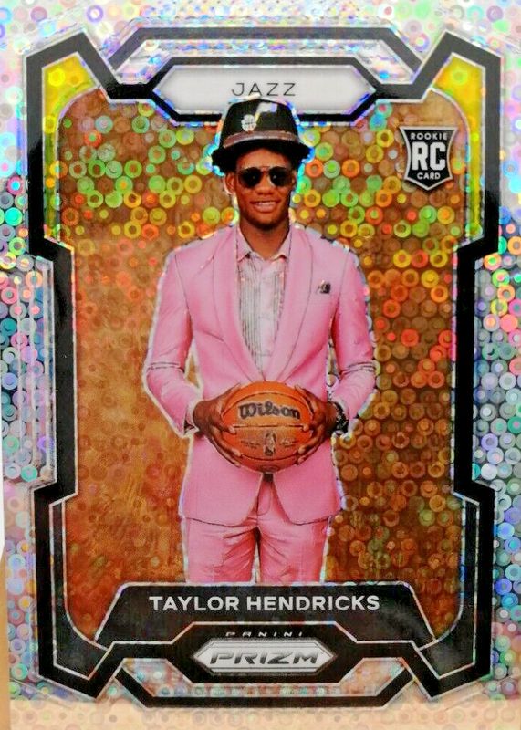 The Taylor Hendricks 2023 Prizm #161 Rookie Variation - Fast Break card in Raw condition has not changed in price in the last 30 days and was last sold for $3.00 .