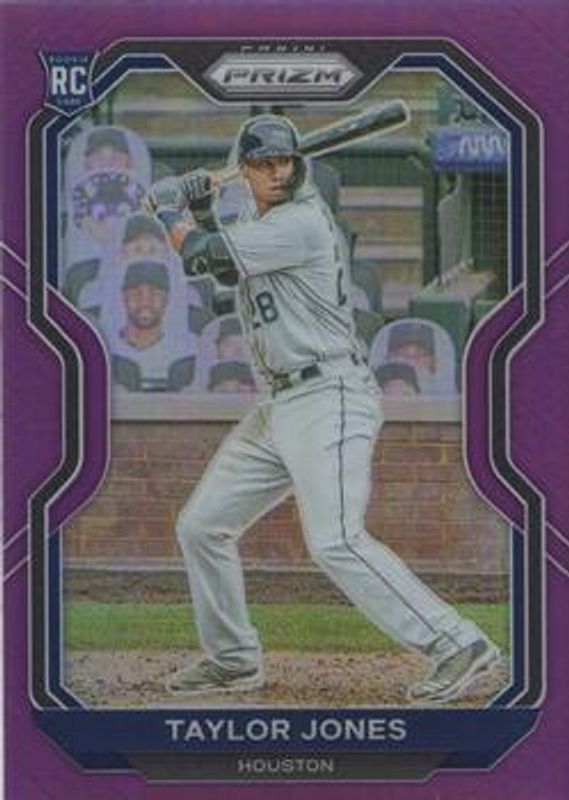 The Taylor Jones 2021 Prizm #184 Purple Rookie card is 1 of 48 Taylor Jones' card variations in the 2021 Prizm set being tracked by Sports Card Investor, including Base, Blue, Blue Velocity, Carolina Blue, and Cosmic Haze.
