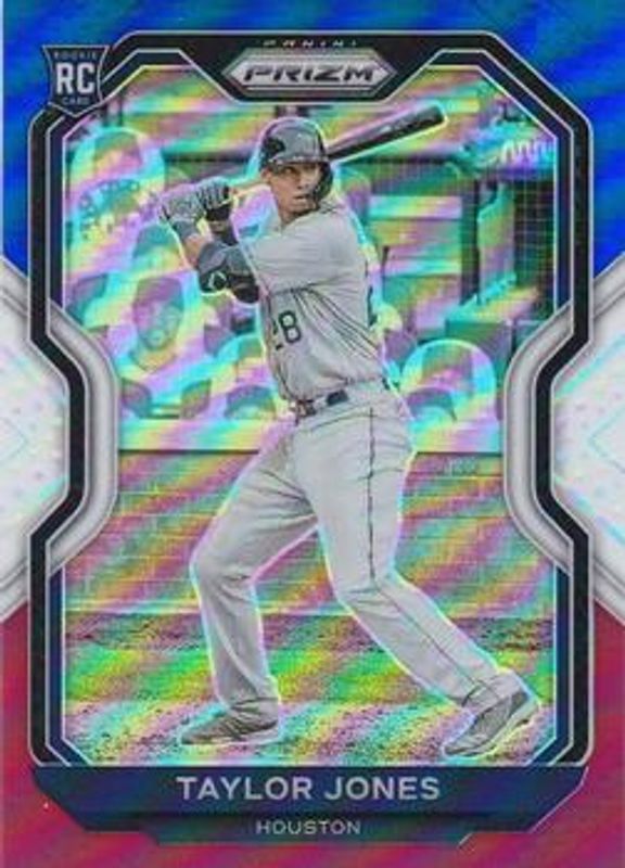 The Taylor Jones 2021 Prizm #184 Red White Blue Rookie card is 1 of 48 Taylor Jones' card variations in the 2021 Prizm set being tracked by Sports Card Investor, including Base, Blue, Blue Velocity, Carolina Blue, and Cosmic Haze.