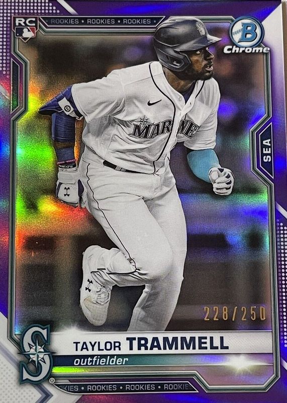 K038 TAYLOR TRAMMELL RC 2021 BOWMAN CHROME PURPLE REFRACTOR 1/250 #61 MARINERS
