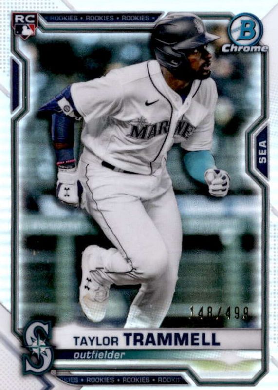 The Taylor Trammell 2021 Bowman Chrome #61 Refractor /499 Rookie card in Raw condition has not changed in price in the last 30 days and was last sold for $1.00 .