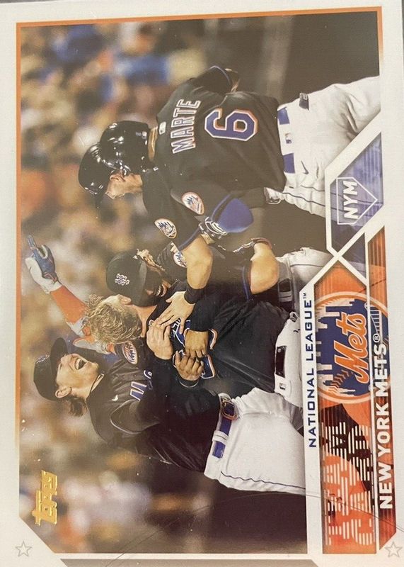 The Team Card 2023 Topps #291 Golden Mirror Image Variation /(SSP) (New York Mets) card in Raw condition has not changed in price in the last 30 days and was last sold for $40.00 .