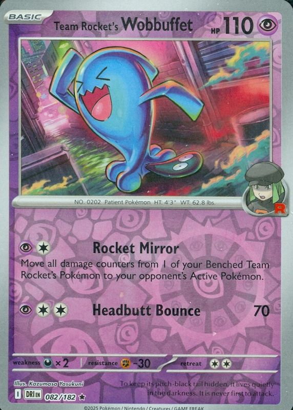 Team Rocket's Wobbuffet 2025 Scarlet & Violet: Destined Rivals #082/182 Reverse Holo RAW TCG (LIGHTLY PLAYED) Price Guide