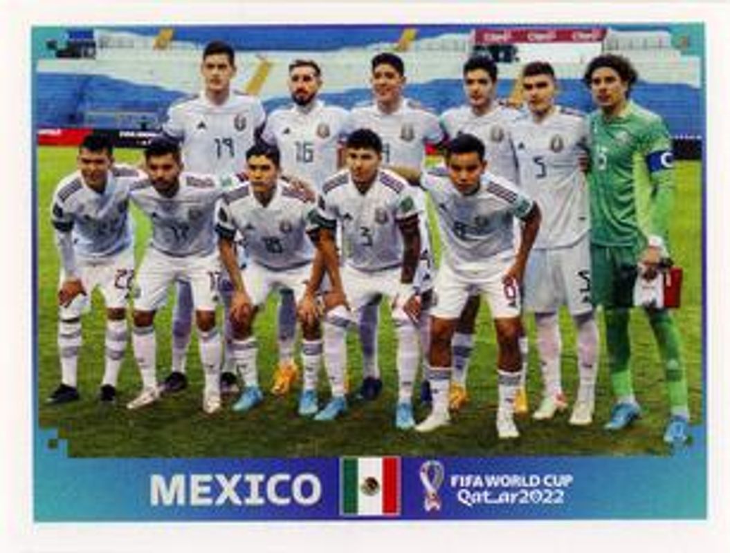 The Team 2022 Panini World Cup Stickers #MEX1 Base card is 1 of 224 Team's card variations in the 2022 Panini World Cup Stickers set being tracked by Sports Card Investor, including #ARG1 Base, #WAL1 Base, #USA1 Base, #URU1 Base, and #TUN1 Base.