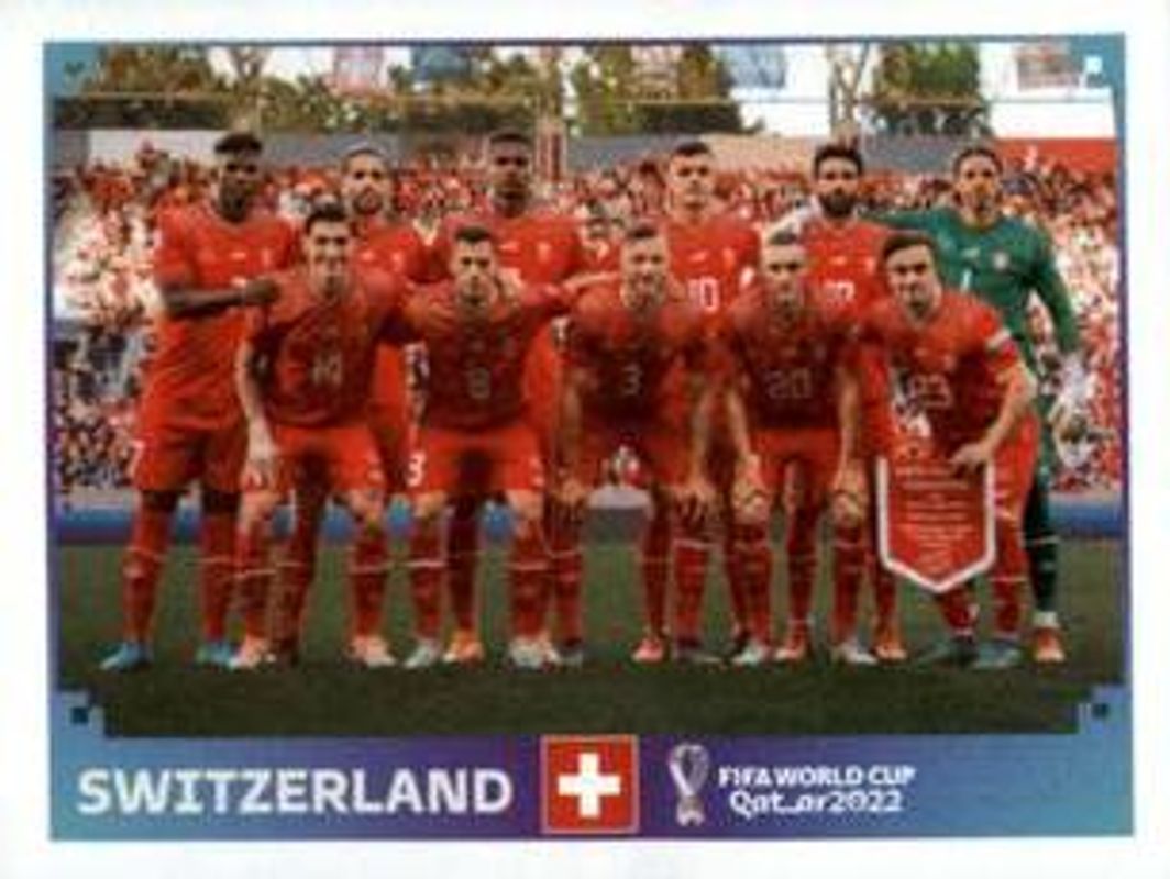 The Team 2022 Panini World Cup Stickers #SUI1 Base card is 1 of 224 Team's card variations in the 2022 Panini World Cup Stickers set being tracked by Sports Card Investor, including #ARG1 Base, #WAL1 Base, #USA1 Base, #URU1 Base, and #TUN1 Base.