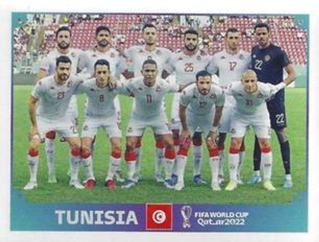The Team 2022 Panini World Cup Stickers #TUN1 Base card is 1 of 224 Team's card variations in the 2022 Panini World Cup Stickers set being tracked by Sports Card Investor, including #ARG1 Base, #WAL1 Base, #USA1 Base, #URU1 Base, and #SUI1 Base.