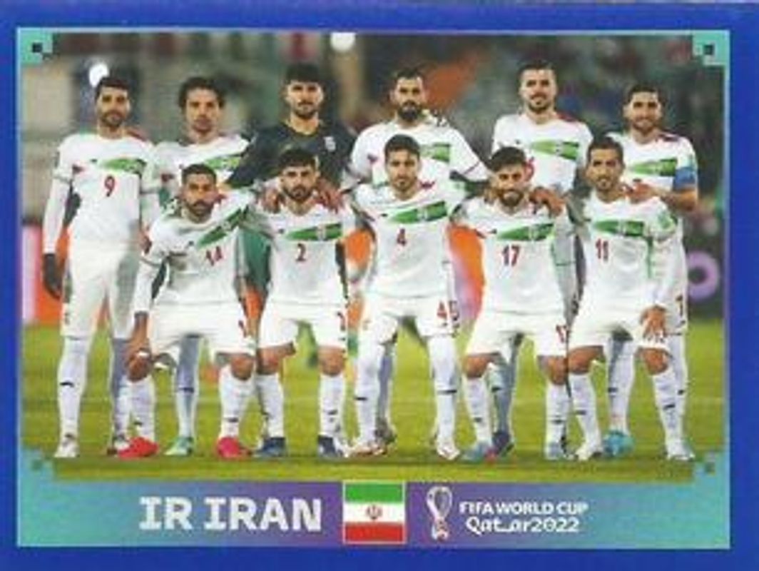 The Team 2022 Panini World Cup Stickers #IRN1 Blue (1:2) card is 1 of 224 Team's card variations in the 2022 Panini World Cup Stickers set being tracked by Sports Card Investor, including #ARG1 Base, #WAL1 Base, #USA1 Base, #URU1 Base, and #TUN1 Base.