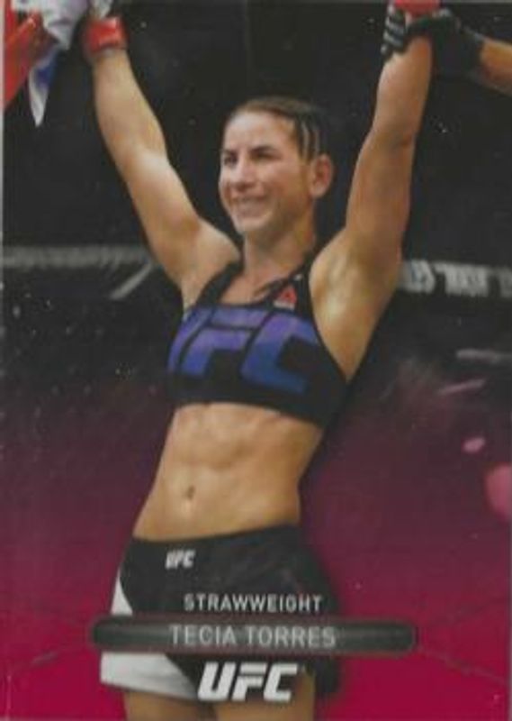 The Tecia Torres 2016 Topps High Impact UFC #41 Red /8 card is 1 of 6 Tecia Torres' card variations in the 2016 Topps High Impact UFC set being tracked by Sports Card Investor, including Base, Blue, Gold /1, Autographs, and Femme Fighters.