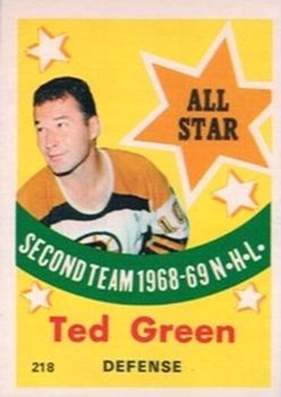 The Ted Green 1969 O-Pee-Chee #218 Base card is 1 of 2 Ted Green's card variations in the 1969 O-Pee-Chee set being tracked by Sports Card Investor, including Base.