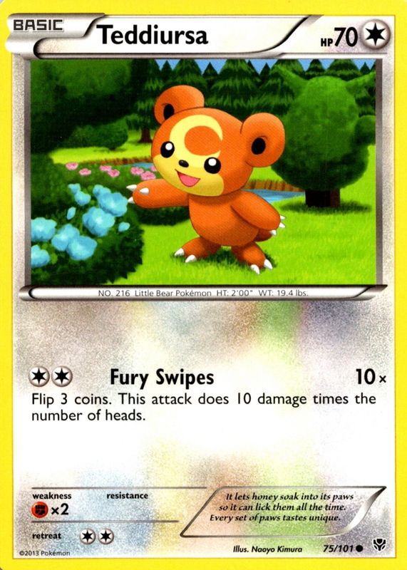Teddiursa 2013 Black & White: Plasma Blast #075/101 Base RAW TCG (NEAR MINT) Price Guide