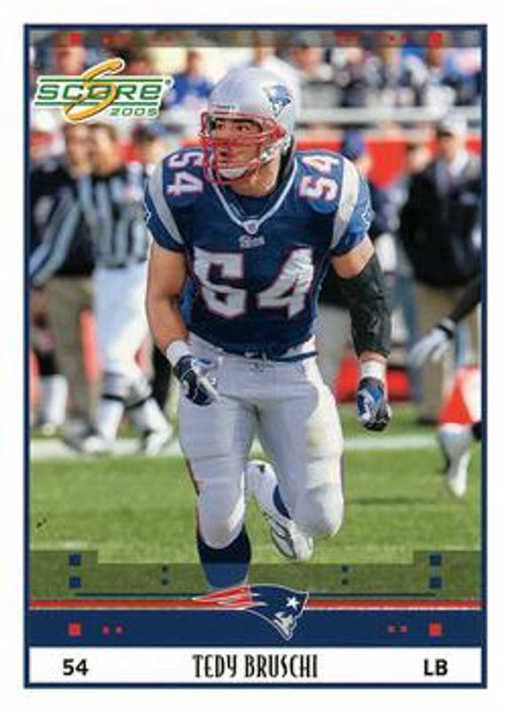 The Tedy Bruschi 2005 Score #171 Glossy card is 1 of 12 Tedy Bruschi's card variations in the 2005 Score set being tracked by Sports Card Investor, including #171 Base, #328 Base, #328 Glossy, #171 Scorecard /599, and #328 Scorecard /599.