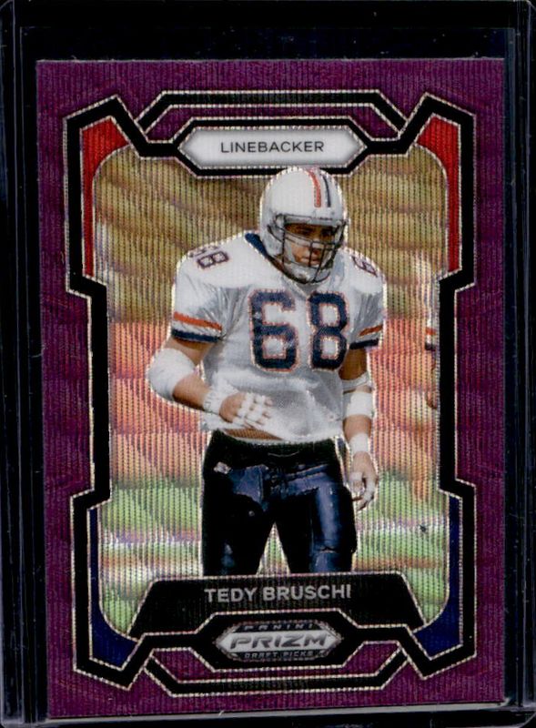 The Tedy Bruschi 2024 Prizm Draft Picks #87 Purple Wave card is 1 of 57 Tedy Bruschi's card variations in the 2024 Prizm Draft Picks set being tracked by Sports Card Investor, including Base, Green, Red Ice, Ruby Wave, and Silver.