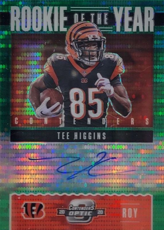 Recent Sales of Tee Higgins 2020 Contenders Optic #ROY3 Rookie of the Year Contenders Autographs - Green Pulsar /27 Raw