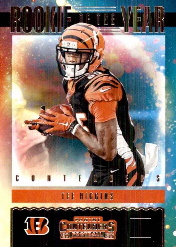 The Tee Higgins 2020 Contenders #RY-THI Rookie of the Year Contenders card in Raw condition has moved down -$0.65 (-39.4%) in the last 30 days and was last sold for $1.00 .