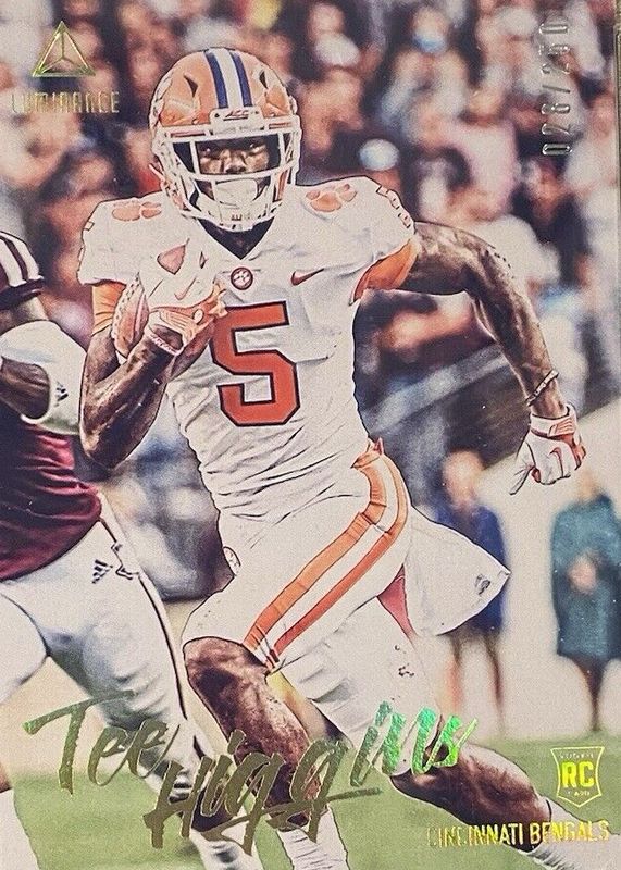 The Tee Higgins 2020 Luminance #113 Gold (Rookie) /250 card in Raw condition has not changed in price in the last 30 days and was last sold for $3.60 .