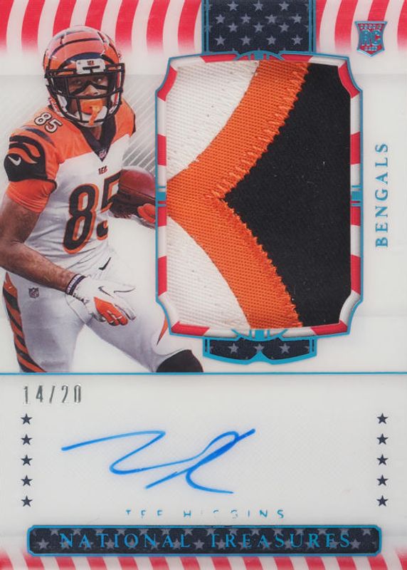 Tee Higgins 2020 National Treasures #166 Rookie Patch Auto - Stars & Stripes /20 RAW Price Guide