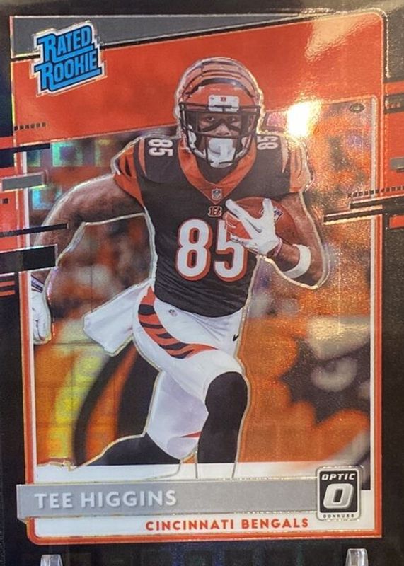 This card is 1 of 60 Tee Higgins' card variations in the 2020 Optic set being tracked by Sports Card Investor, including Base, Blue Hyper, Blue Scope, Bronze, and Green Velocity.