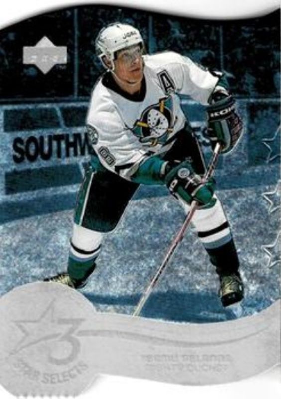 The Teemu Selanne 1997 Upper Deck #T5A Three Star Selects card is 1 of 10 Teemu Selanne's card variations in the 1997 Upper Deck set being tracked by Sports Card Investor, including Base, Game Dated, Box Toppers, Series One Jumbo, and Smooth Grooves.