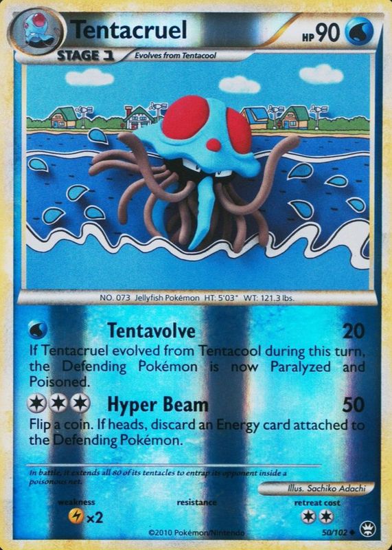 The Tentacruel 2010 HeartGold & SoulSilver: Triumphant #050/102 Reverse Holo card in Raw TCG (Lightly Played) condition has not changed in price in the last 30 days and was last sold for $4.38 .