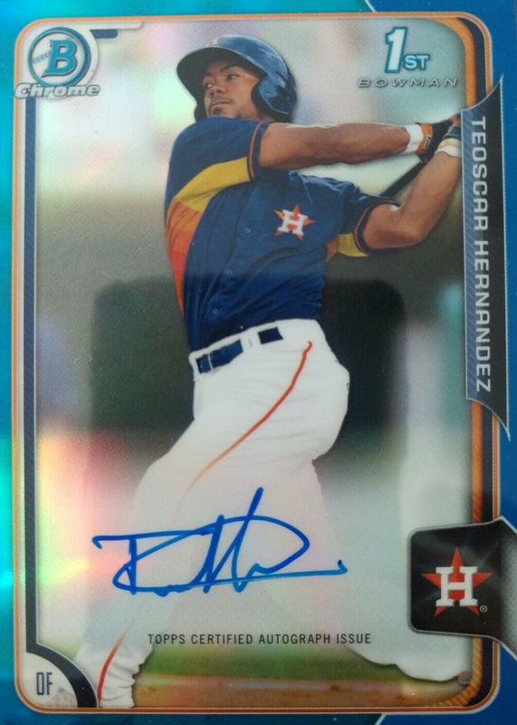 Teoscar Hernandez's Baseball cards are available in at least 44 sets. Teoscar Hernandez's biggest 7-day price movers are 2017 Topps Chrome #RA-TH Rookie Auto - Refractor /499, 2015 Bowman #BCAP-TH Chrome Prospect Auto - Blue Refractor /150 (1st), and 2015 Bowman #BCAP-TH Chrome Prospect Auto - Purple Refractor /250 (1st).