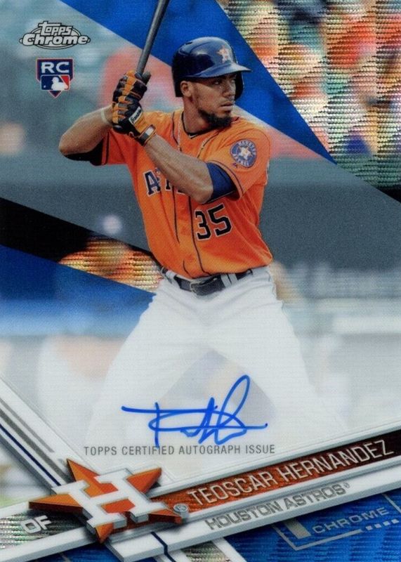 This card is 1 of 11 Teoscar Hernandez's card variations in the 2017 Topps Chrome set being tracked by Sports Card Investor, including Rookie Auto, Rookie Auto - Refractor /499, Rookie Auto - Purple Refractor /250, Rookie Auto - Blue Refractor /150, and Rookie Auto - Green Refractor /99.