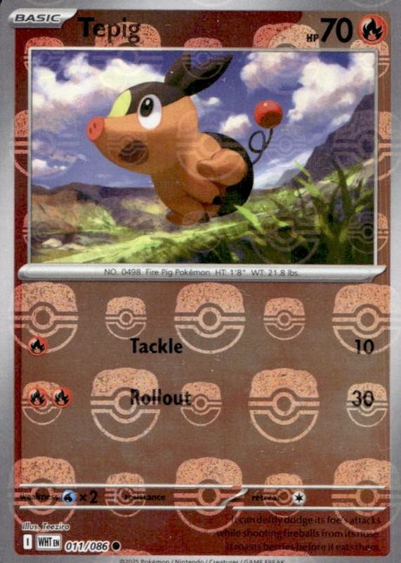 Tepig 011/086 - Masterball Reverse Holo - White Flare - Pokemon TCG
