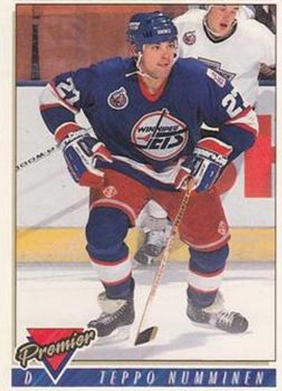 The Teppo Numminen 1993 Topps Premier #269 Base card is 1 of 2 Teppo Numminen's card variations in the 1993 Topps Premier set being tracked by Sports Card Investor, including Gold.