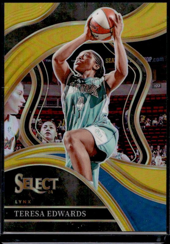 The Teresa Edwards 2024 Select WNBA #230 Base Gold /10 card is 1 of 17 Teresa Edwards' card variations in the 2024 Select WNBA set being tracked by Sports Card Investor, including Base, Base Green Ice, Base Pink Ice, Base Red Ice, and Base Silver.