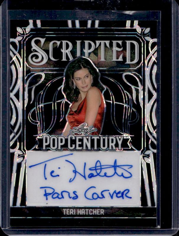 The Teri Hatcher 2024 Leaf Metal Pop Century #SC-TH2 Scripted Autographs Kaleidoscope - Silver /1 card is 1 of 205 Teri Hatcher's card variations in the 2024 Leaf Metal Pop Century set being tracked by Sports Card Investor, including Base Autographs Diagonal - Shimmer Silver /25, Base Autographs - Prismatic Silver /25, Base Autographs Kaleidoscope - Silver /20, Base Autographs - Prismatic Platinum Blue /20, and Base Autographs - Crystal Silver /15.