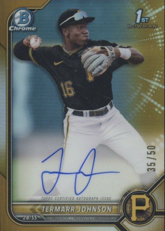 TERMARR JOHNSON 2022 BOWMAN DRAFT CHROME 1ST PROSPECT GOLD REFRACTOR AUTO 2/50