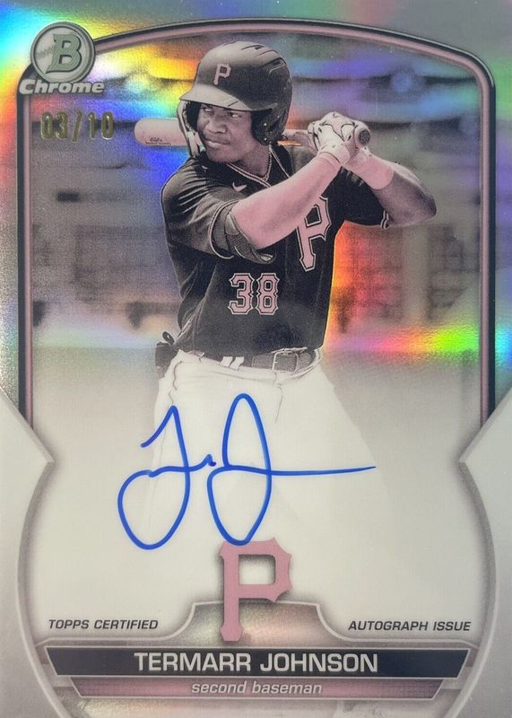 Termarr Johnson 2023 Bowman #CPA-TJ Chrome Prospect Auto - Pearl Refractor /10 RAW Price Guide