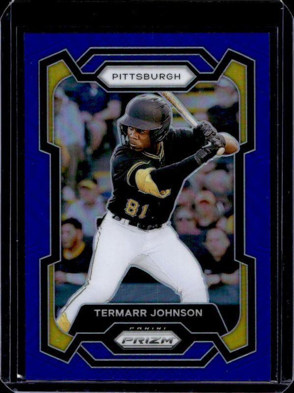 The Termarr Johnson 2024 Prizm #199 Blue /199 card is 1 of 38 Termarr Johnson's card variations in the 2024 Prizm set being tracked by Sports Card Investor, including Base, Blue Ice, Green, Green Ice, and Pink Ice.