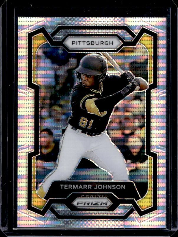 The Termarr Johnson 2024 Prizm #199 Pulsar /499 card is 1 of 38 Termarr Johnson's card variations in the 2024 Prizm set being tracked by Sports Card Investor, including Base, Blue Ice, Green, Green Ice, and Pink Ice.