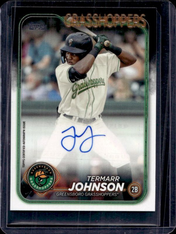 The Termarr Johnson 2024 Topps Pro Debut #PD-175 Base Autographs card is 1 of 50 Termarr Johnson's card variations in the 2024 Topps Pro Debut set being tracked by Sports Card Investor, including Base, Fuchsia Foil /199, Sparkle Foil /175, Blue Foil /150, and Green Foil /99.