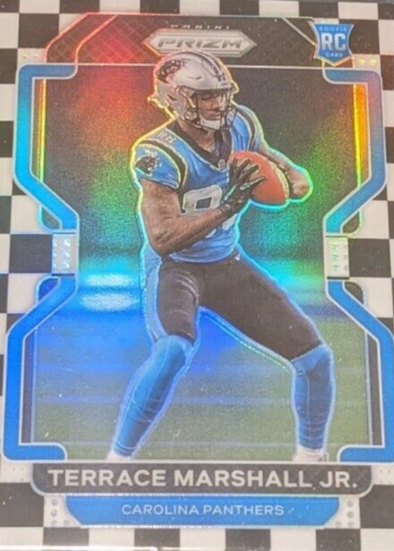 This card is 1 of 70 Terrace Marshall Jr.'s card variations in the 2021 Prizm set being tracked by Sports Card Investor, including Base, Disco, Green, Green Ice, and Lazer.