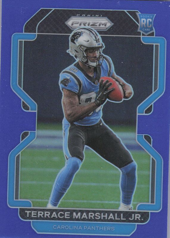 The Terrace Marshall Jr. 2021 Prizm #348 Blue /(SSP) Rookie card in Raw condition has not changed in price in the last 30 days and was last sold for $34.95 .