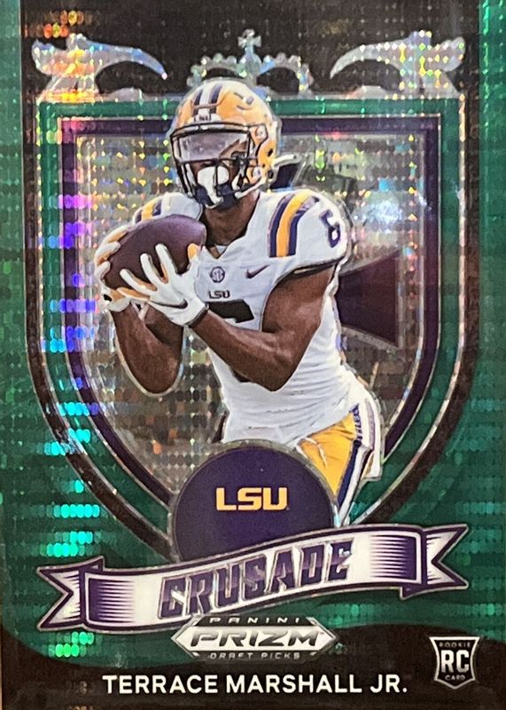 This card is 1 of 10 Terrace Marshall Jr.'s card variations in the 2021 Prizm Draft Picks set being tracked by Sports Card Investor, including Base, Crusade, Crusade Green, Crusade Purple Wave, and Crusade Silver.