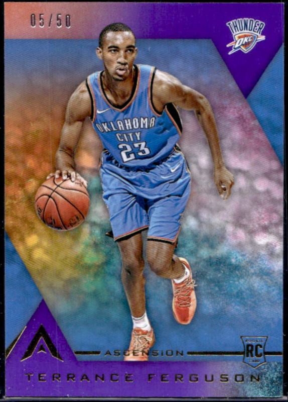 The Terrance Ferguson (NBA) 2017 Ascension #125a Purple (Rookie) /50 card is 1 of 13 Terrance Ferguson (NBA)'s card variations in the 2017 Ascension set being tracked by Sports Card Investor, including #125a Base, #125b Base, #125a Blue /125, #125b Blue /125, and #125a Red /75.
