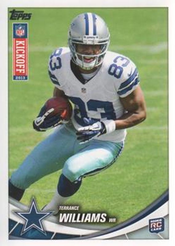 The Terrance Williams 2013 Topps Kickoff #25 Base Rookie card is 1 of 2 Terrance Williams' card variations in the 2013 Topps Kickoff set being tracked by Sports Card Investor, including Autographs /79.