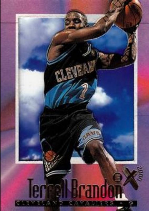 The Terrell Brandon 1996 Skybox E-X2000 #12 Base card is 1 of 2 Terrell Brandon's card variations in the 1996 Skybox E-X2000 set being tracked by Sports Card Investor, including Credentials /499.