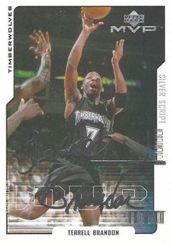 The Terrell Brandon 2000 Upper Deck MVP #99 Silver Script card is 1 of 4 Terrell Brandon's card variations in the 2000 Upper Deck MVP set being tracked by Sports Card Investor, including Base, Gold Script /100, and Super Script /25.