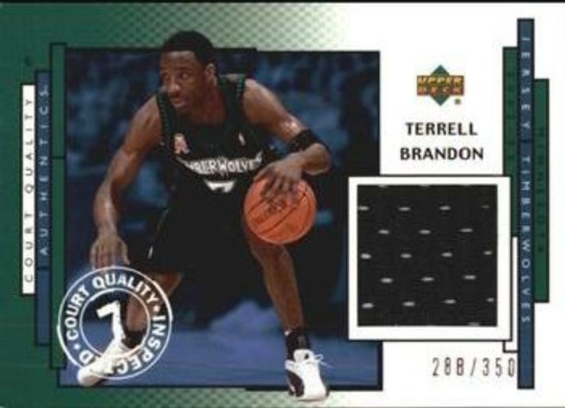 The Terrell Brandon 2002 Upper Deck Authentics #TB-Q Court Quality /350 card is 1 of 5 Terrell Brandon's card variations in the 2002 Upper Deck Authentics set being tracked by Sports Card Investor, including Base, Gold /250, Rainbow /50, and Uniform Greatness.