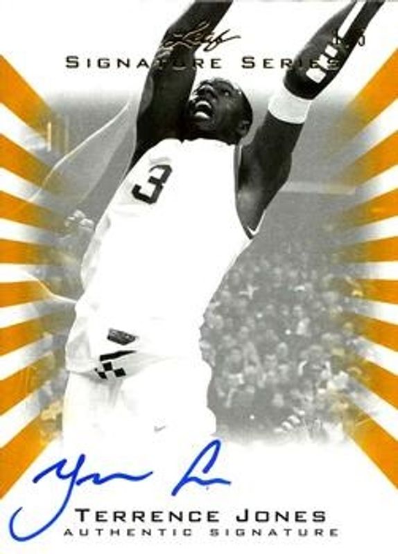 The Terrence Jones 2012 Leaf Signature Series #BA-TJ1 Black & White - Gold /5 Rookie card is 1 of 43 Terrence Jones' card variations in the 2012 Leaf Signature Series set being tracked by Sports Card Investor, including Base, Silver /99, Gold /25, Blue /10, and Red /5.