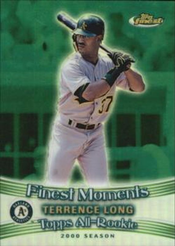 The Terrence Long 2001 Topps Finest #FM5 Finest Moments - Refractor card is 1 of 3 Terrence Long's card variations in the 2001 Topps Finest set being tracked by Sports Card Investor, including Autographs, and Finest Moments.