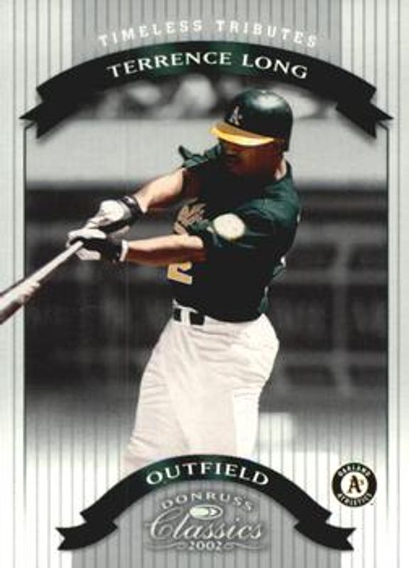 The Terrence Long 2002 Donruss Classics #87 Timeless Tributes /100 card is 1 of 6 Terrence Long's card variations in the 2002 Donruss Classics set being tracked by Sports Card Investor, including Base /1500, Samples - Gold, Samples - Silver, Chicago National /5, and Significant Signatures /100.