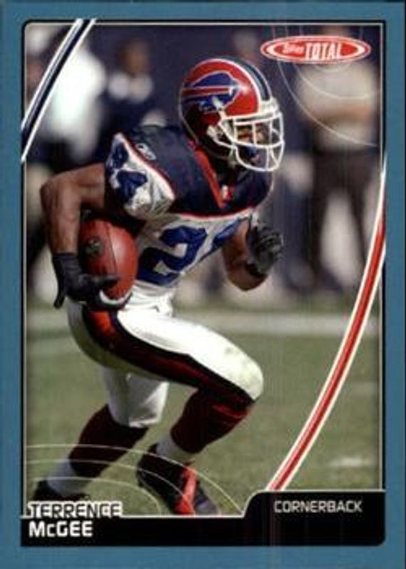 The Terrence McGee 2007 Topps Total #275 Blue card is 1 of 11 Terrence McGee's card variations in the 2007 Topps Total set being tracked by Sports Card Investor, including Base, 1st Edition Copper, Gold, Red, and Silver.
