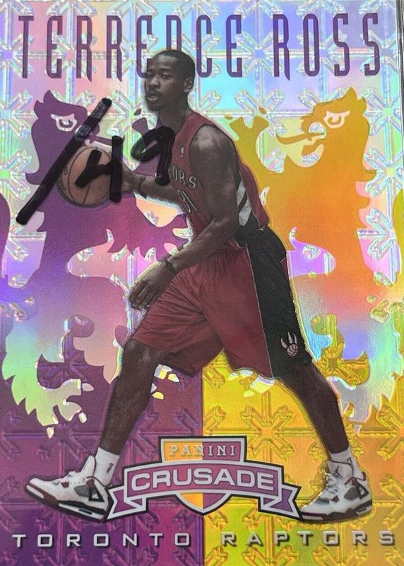 The Terrence Ross 2012 Crusade #51 Prizm Purple & Gold /49 Rookie card in Raw condition has not changed in price in the last 30 days and was last sold for $5.00 .