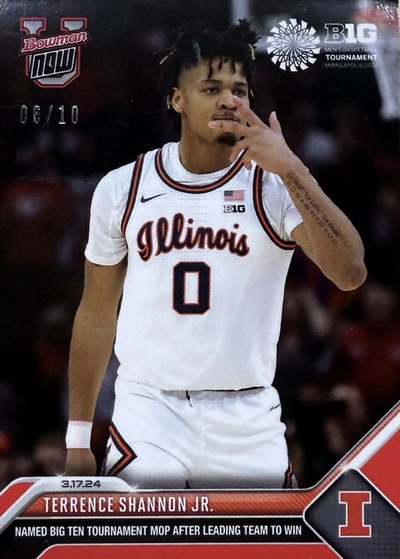 This card is 1 of 12 Terrence Shannon Jr.'s card variations in the 2023 Bowman U Now set being tracked by Sports Card Investor, including #14 Base (Print Run: 250), #72 Base (Print Run: 322), #14 Blue /49, #72 Blue /49, and #14 Purple /25.