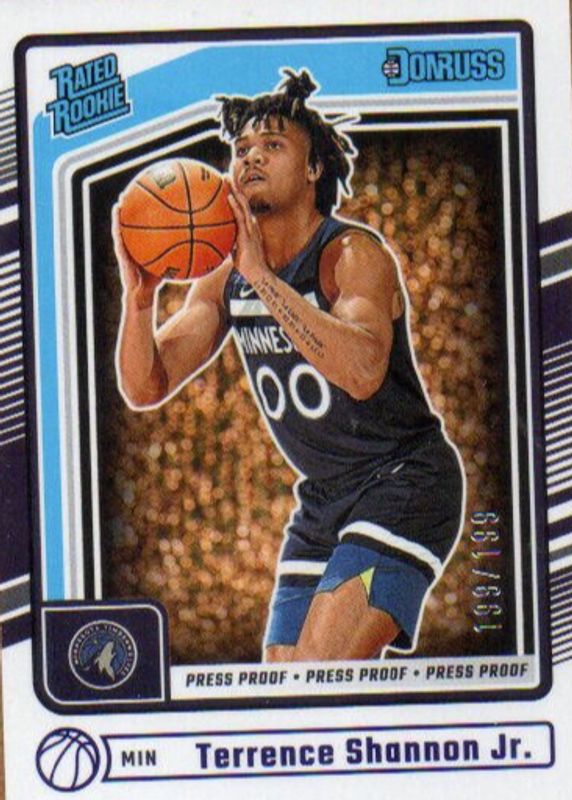 The Terrence Shannon Jr. 2024 Donruss #226 Press Proof Purple /199 Rookie card in Raw condition has not changed in price in the last 30 days and was last sold for $3.25 .